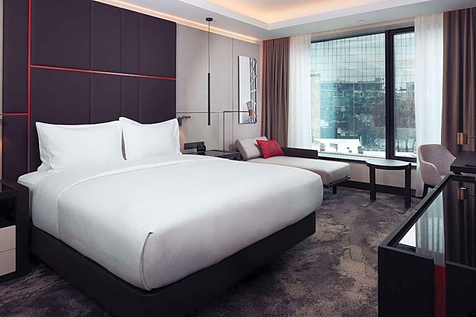 The spacious suite provides air conditioning, a mini-bar, as well as a private bathroom featuring a bath and a shower. The suite offers a tea and coffee maker, a seating area, a sofa and a flat-screen TV. The unit offers 1 bed.